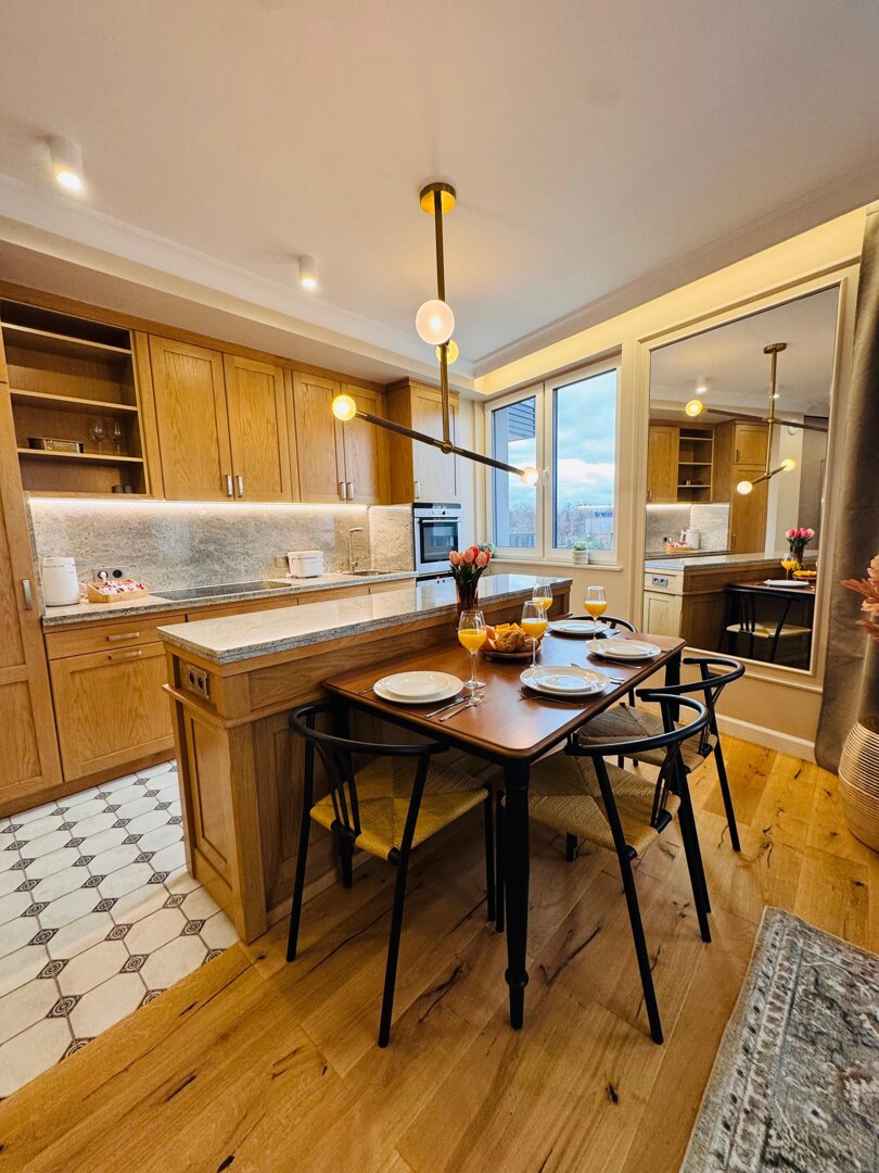 We present the luxurious and fully equipped "Jagielloński Penthouse" apartment, spanning 102 m², located in the very heart of Radom. This spacious penthouse offers comfortable accommodation for up to 8 guests, making it the perfect choice for families, gr