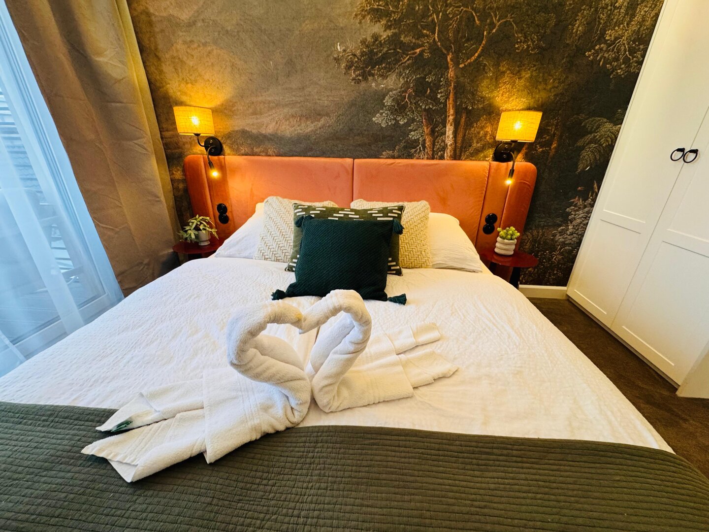 – Sypialnia 1: duże łóżko dwuosobowe