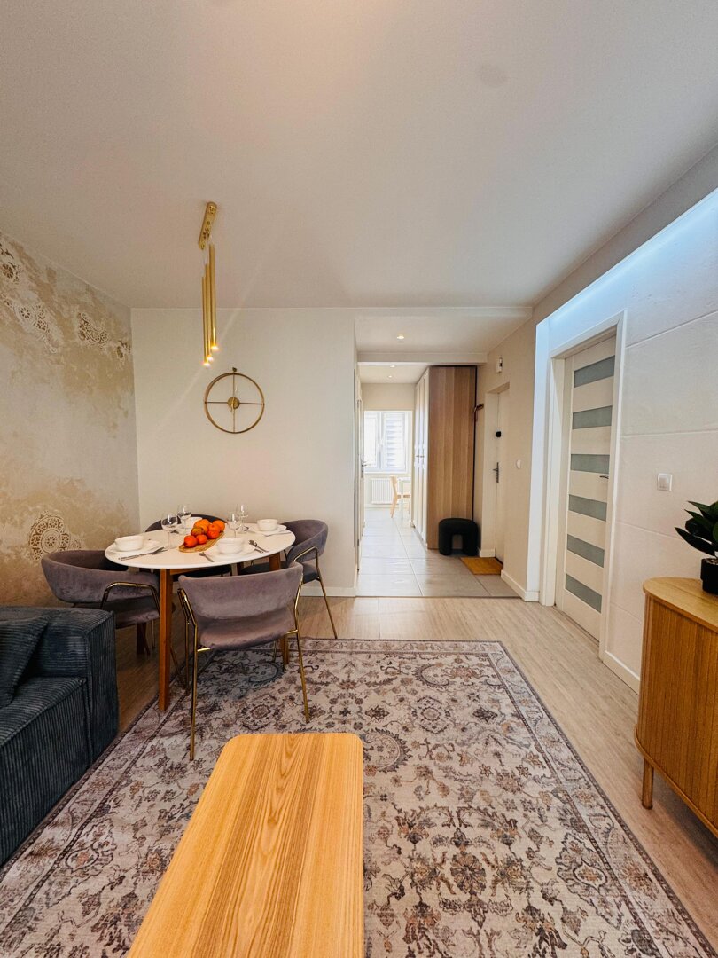 Stylish apartment in the centre of Radom for up to 4 guests. 1 bedroom, living room with sofa bed, balcony, underground parking and easy self check-in.