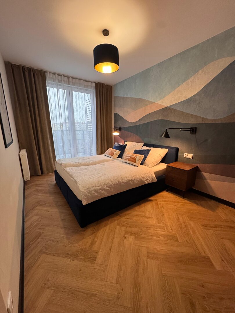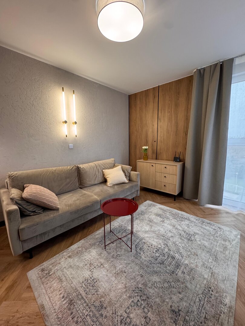 Stylowy apartament w centrum Radomia dla maksymalnie 4 osób. 1 sypialnia, salon z rozkładaną sofą, balkon, parking w garażu podziemnym i wygodny self check-in.