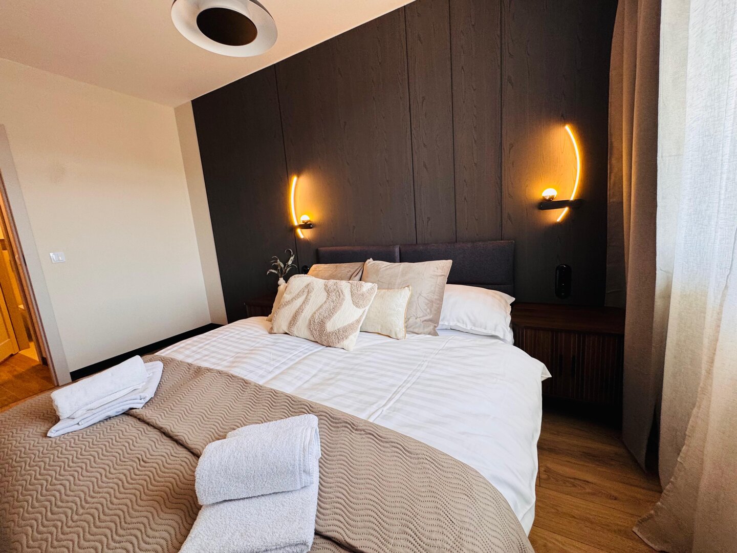 Komfortowy apartament (55 m²) z dwiema sypialniami i balkonem, na zamkniętym osiedlu tuż przy Zalewie Borki w Radomiu. Idealny dla rodzin i par — do 5 osób. Darmowy parking, Wi-Fi, self check-in 24/7.